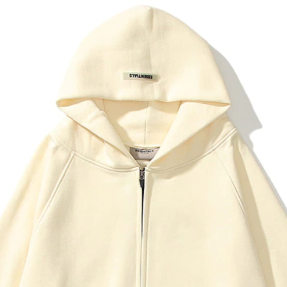 Essentials Reflective Print Zip-up Oversized Cream Hoodie – A Streetwear Staple